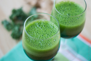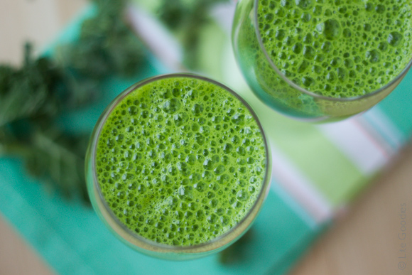 This Green Juice Recipe is great for detoxing when you are feeling bloating or after weekends and holidays, when people usually overeat. Kale’s main benefit is its high concentration of fiber, antioxidant vitamins (A, C, K) and sulphur. Ginger is digestion-friendly and it boosts metabolism, which is great for weight loss. Both together are perfect and will make you fell better quickly ;). To bring sweetness to this drink, I like to use Lemon flavored Zero VitaminWater: it is calories-free, do not contain artificial sweetener and its color comes from natural fruits and vegetables, but not enough to bring calories, only the color itself. I love VitaminWater, specially the Zero version, because is not loaded with sugar. Note: You should have this product in addition to your water consumption (because nothing replaces water), but its a good option when you are craving soda … I am ashamed to tell you, but I do crave soda!